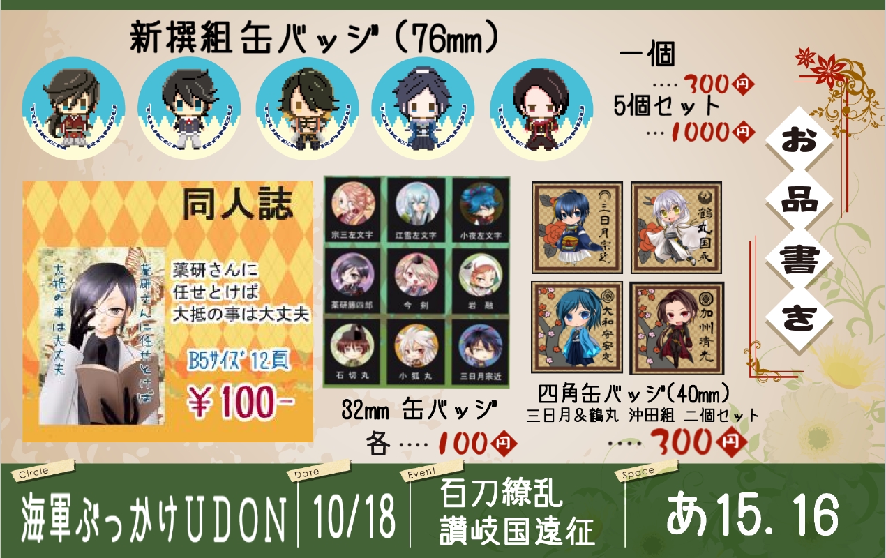 10/18 百刀繚乱 ~君の心を白刃取り~ 讃岐国遠征 【お品書】